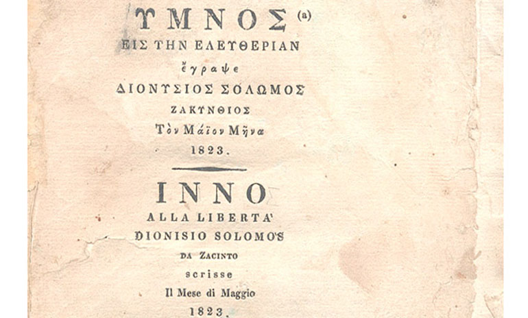 Ο Ύμνος εις την Ελευθερίαν γράφτηκε από τον ποιητή Διονύσιο Σολωμό το 1823 στη Ζάκυνθο και καθιερώθηκε ως ο εθνικός ύμνος της χώρας μας σαν σήμερα, 4 Αυγούστου, του 1865 (και της Κύπρου το 1966). Πρόκειται για τον μεγαλύτερο εθνικό ύμνο του κόσμου, καθώς αριθμεί 158 στροφές (ή 632 στίχους).