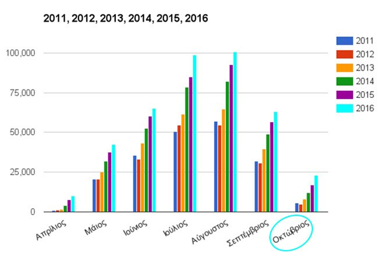 Όπως προκύπτει από τα παραπάνω στοιχεία οι διεθνείς αεροπορικές αφίξεις του Οκτωβρίου 2016, στο αεροδρόμιο της Σαντορίνης, ήταν 4πλάσιες από αυτές του αντίστοιχου μήνα του 2011, γεγονός που αποδεικνύει ότι η επιμήκυνση της τουριστικής περιόδου έχει γίνει πράξη στη Σαντορίνη.