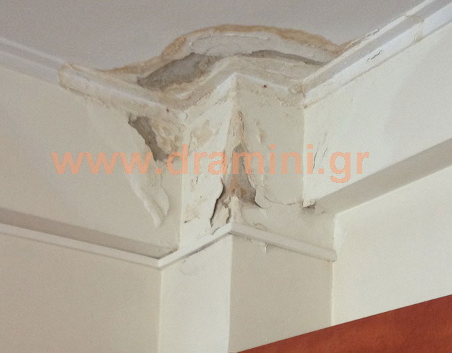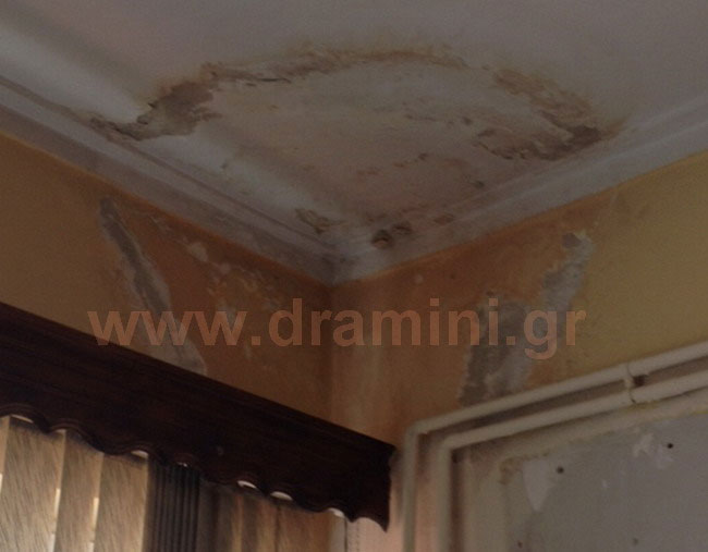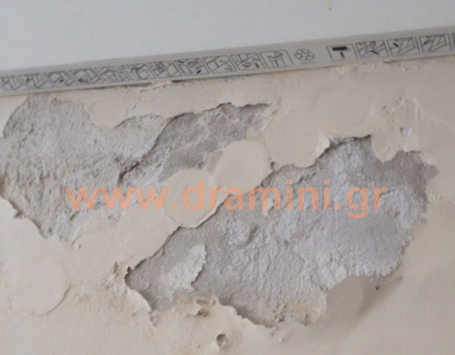 Γεμάτο υγρασία και… ξηλωμένους τοίχους είναι το κτήριο της Αντιπεριφέρειας Δράμας, λόγω των βροχοπτώσεων των προηγούμενων μηνών.