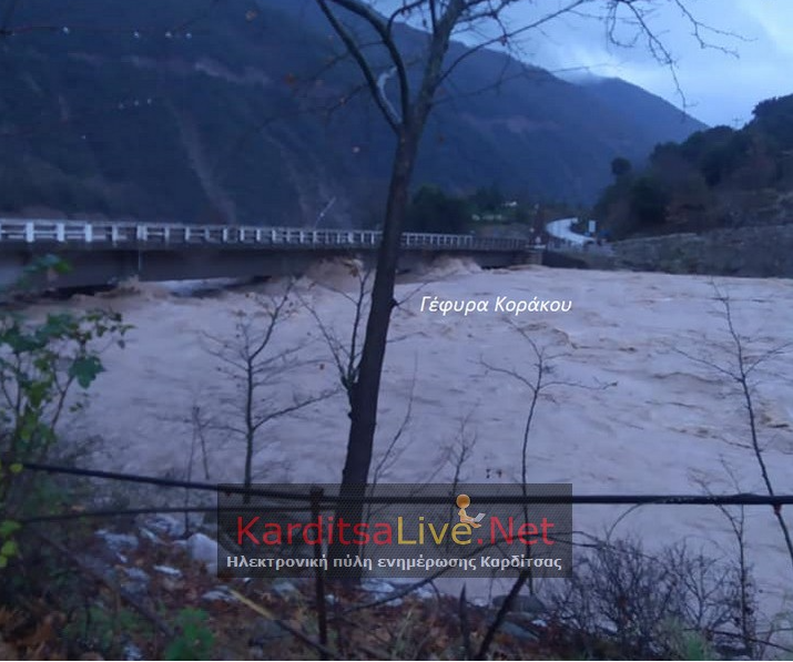 Επίσης τα νερά του Αχελώου βρίσκονται οριακά κάτω από τη γέφυρα Κοράκου, ενώ η βροχόπτωση συνεχίζεται και υπάρχουν αρκετές καταπτώσεις κυρίως στο περιφερειακό οδικό δίκτυο.