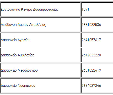 Η Δνση Δασών Αιτωλ/νίας καλεί όλους τους πολίτες να βοηθήσουν στο δύσκολο έργο της προστασίας και διατήρησης των φυσικών και δασικών οικοσυστημάτων λειτουργώντας αποτρεπτικά στη καταστροφή τους, ενημερώνοντας στα τηλέφωνα: