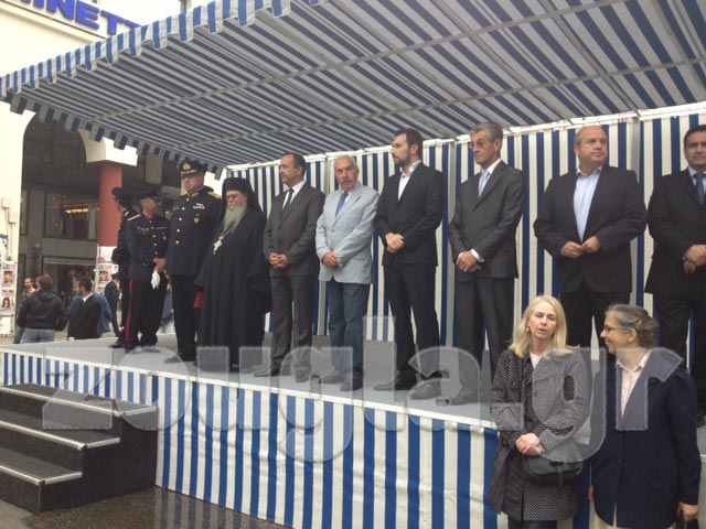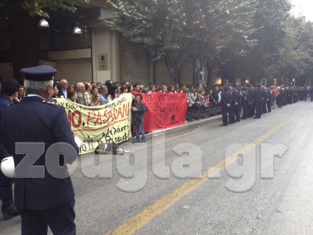 Πολύ αυστηρά τα αστυνομικά μέτρα σε όλο το κέντρο της πόλης ενώ 100 μέτρα μακριά από την εξέδρα των επισήμων πραγματοποιήθηκε συγκέντρωση μελών του ΣΥΡΙΖΑ και της κίνησης «Απελάστε τον ρατσισμό» οι οποίοι ανήρτησαν πανό και φώναξαν συνθήματα κατά του ρατσισμού.