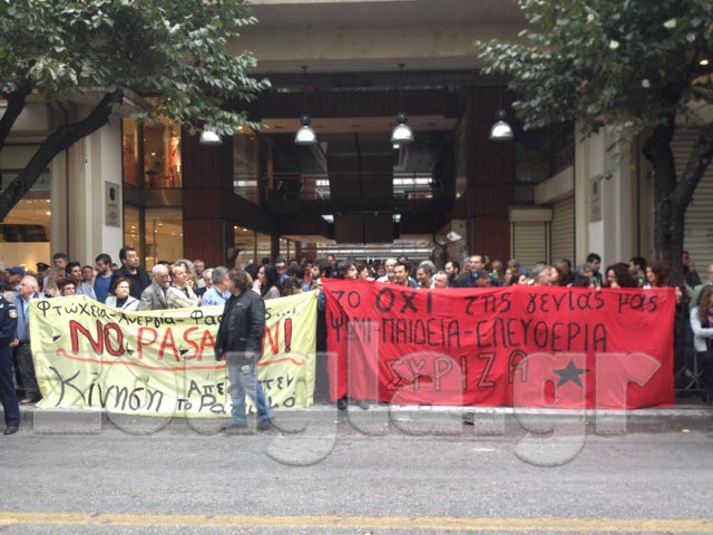 Μικροένταση δημιουργήθηκε όταν 50 με 60 άτομα, μέλη του ΣΥΡΙΖΑ πλησίασαν τις αστυνομικές δυνάμεις και φώναξαν συνθήματα κατά του μνημονίου και των μέτρων λιτότητας.