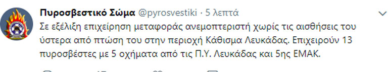 Δείτε το tweet της Πυροσβεστικής: