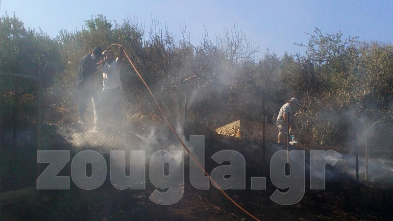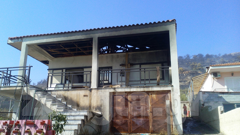 Από τη μανιά της φωτιάς δεν γλίτωσε ένα εξοχικό σπίτι, το οποίο υπέστη σοβαρές υλικές ζημιές, ωστόσο οι πυροσβέστες κατάφεραν να περιορίσουν το μέτωπο προτού οι φλόγες επεκταθούν σε άλλα οικήματα.