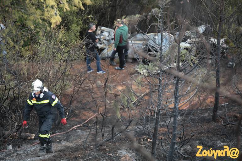 Το Ι.Χ. τυλίχθηκε στις φλόγες, με αποτέλεσμα ο οδηγός να βρει φρικτό θάνατο, ενώ η φωτιά από το όχημα επεκτάθηκε στη γύρω δασική περιοχή.