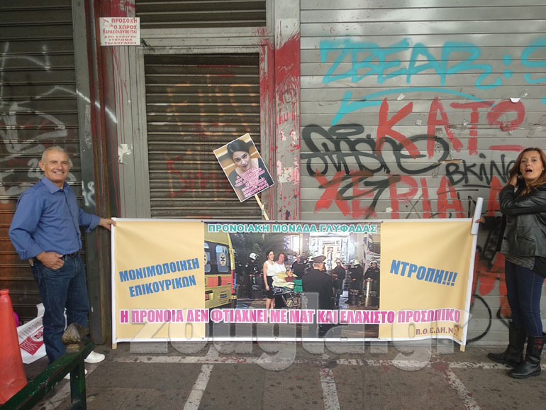 Διαμαρτυρία έξω από το Υπουργείο Εργασίας πραγματοποίησαν μέλη της Πανελλήνιας Ομοσπονδίας Εργαζομένων Δημοσίων Νοσοκομείων (ΠΟΕΔΗΝ) και του ΠΑΜΕ.