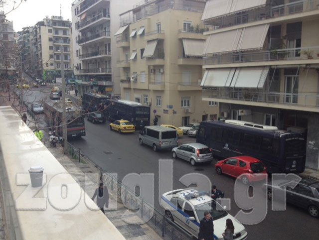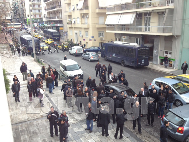 (Κλούβες των ΜΑΤ έξω από το Εφετείο)