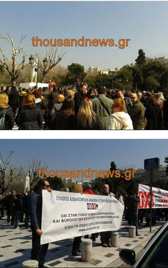 Πορεία διαμαρτυρίας πραγματοποιούν αυτήν την ώρα στη Θεσσαλονίκη λογιστές, φοροτεχνικοί και μέλη του Συλλόγου Ασφαλισμένων Ανασφάλιστων ΟΑΕΕ του Νομού Θεσσαλονίκης, αντιδρώντας στα φορολογικά μέτρα της κυβέρνησης, η οποία, όπως υποστηρίζουν, ποινικοποιεί τη δουλειά τους και επιβάλλει εξοντωτικά πρόστιμα σε περιπτώσεις λαθών ή παραλείψεων.