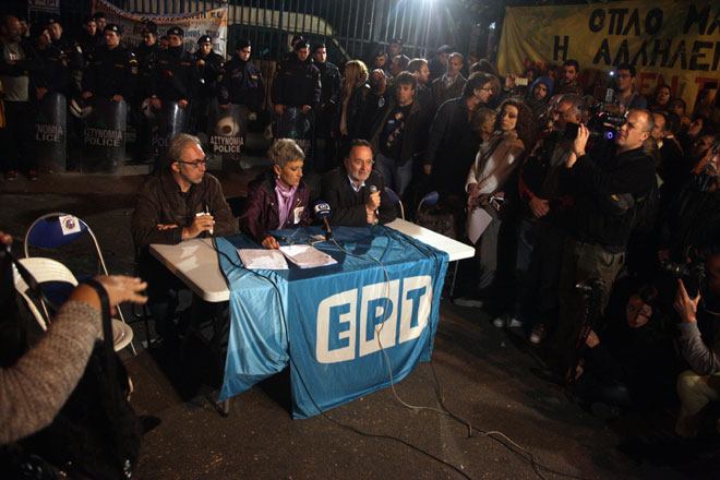 Οι απολυμένοι της ΕΡΤγια πρώτη φορά στην ιστορία της Τηλεόρασης, αναγκάστηκαν να βγάλουν δελτίο ειδήσεων από τον δρόμο. Πρόκειται για μία παγκόσμια πρωτοτυπία, καθώς δημοσιογράφοι και τεχνικοί υποχρεώθηκαν από τις εξελίξεις να προχωρήσουν σε μετάδοση του δελτίου ειδήσεων με πενιχρά μέσα, στήνοντας έναν πάγκο έξω από τα τηλεοπτικά στούντιο επί της λεωφόρου Μεσογείου.