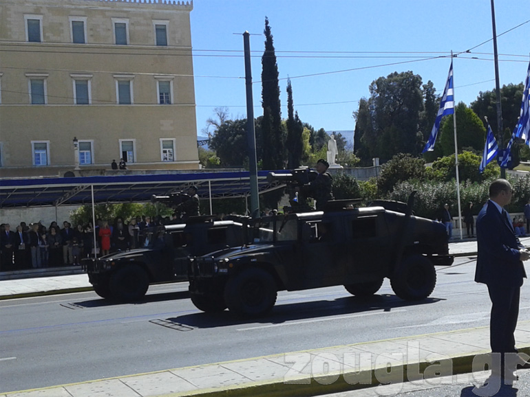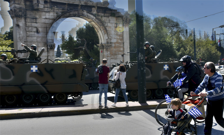 Περίπου μιάμιση ώρα διάρκεια είχε η στρατιωτική παρέλαση η οποία πραγματοποιήθηκε στο κέντρο της Αθήνας για τον εορτασμό της εθνικής επετείου της 25ης Μαρτίου.