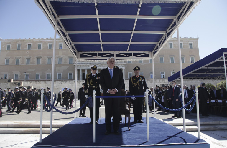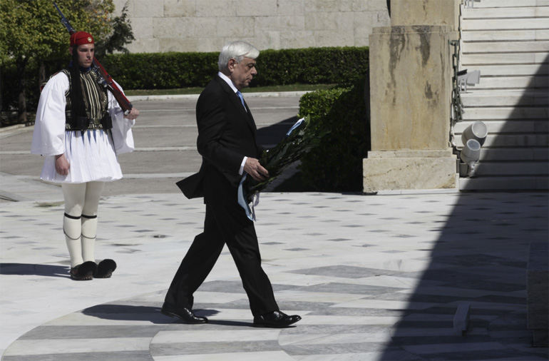 Η κατάθεση στεφάνου από τον Πρόεδρο της Δημοκρατίας, Προκόπη Παυλόπουλο, πριν από την έναρξη της παρέλασης: