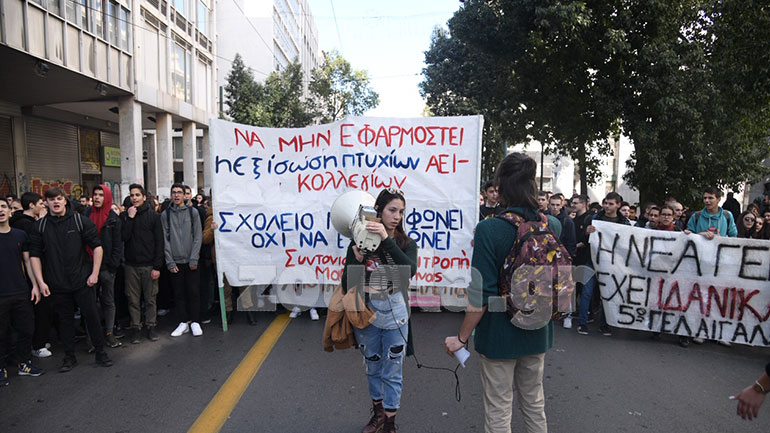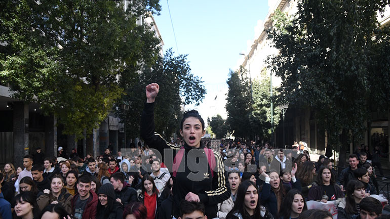 Ολοκληρώθηκε η πορεία των μαθητών στα Προπύλαια, η οποία ξεκίνησε λίγο μετά τις 12:00 το μεσημέρι της Δευτέρας.