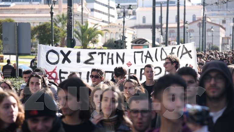 Ολοκληρώθηκε η πορεία των μαθητών στα Προπύλαια, η οποία ξεκίνησε λίγο μετά τις 12:00 το μεσημέρι της Δευτέρας.
