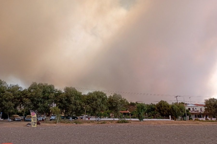 Επίσης συνδράμουν εθελοντές και υδροφόρες ΟΤΑ. Σύμφωνα με τον δημοσιογράφο Γιάννη Σινάνη που βρίσκεται στην περιοχή, περιπολικό σκάφος του Λιμενικού απεγκλώβισε 9 άτομα από τοπική παραλία. Παράλληλα, σύμφωνα με τον περιφερειάρχη Βορείου Αιγαίου Κώστα Μουτζούρη, ένας πυροσβέστης τραυματίστηκε κατά τις προσπάθειες κατάσβεσης.