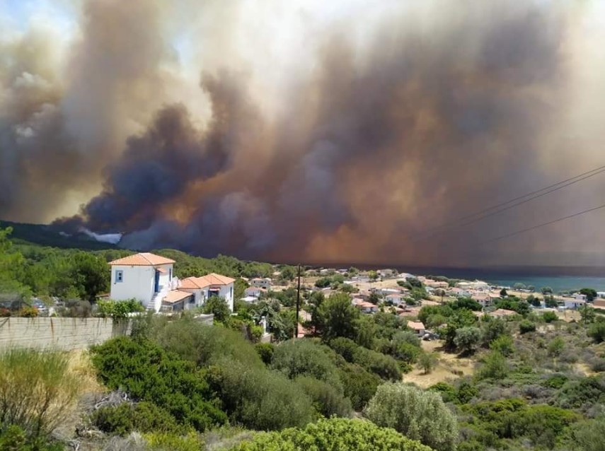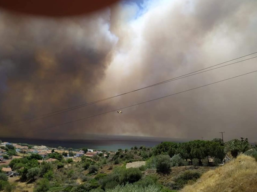 #Πυρκαγιά σε δασική έκταση στο Καστρί του δήμου Δυτικής Λέσβου. Κινητοποιήθηκαν επίγειες και εναέριες δυνάμεις.