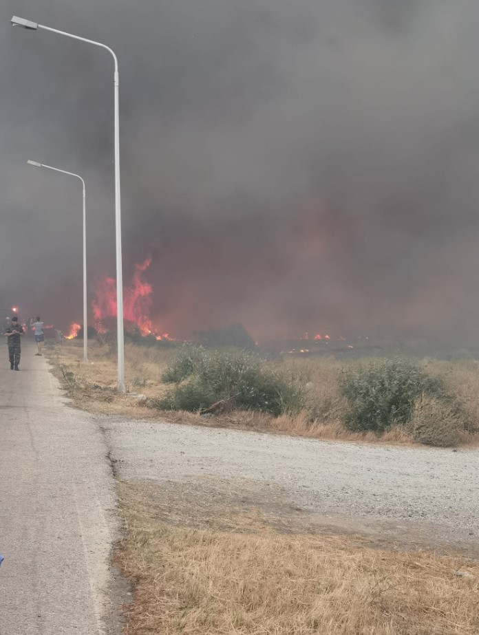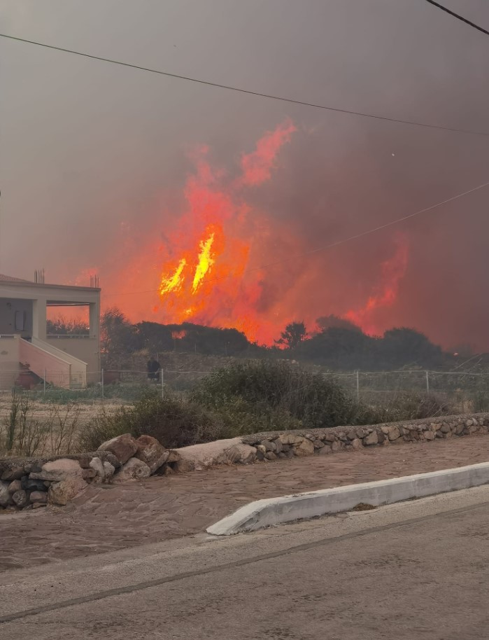 Στην περιοχή πνέουν ισχυροί άνεμοι και η πυρκαγιά νωρίτερα προσέγγισε γρήγορα τον οικισμό των Βατερών.