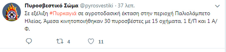 Η άμεση κινητοποίηση των πυροσβεστικών δυνάμεων με επίγεια και εναέρια μέσα, απέτρεψε τον κίνδυνο επέκτασης και τώρα επιχειρείται η πλήρης κατάσβεσή της.