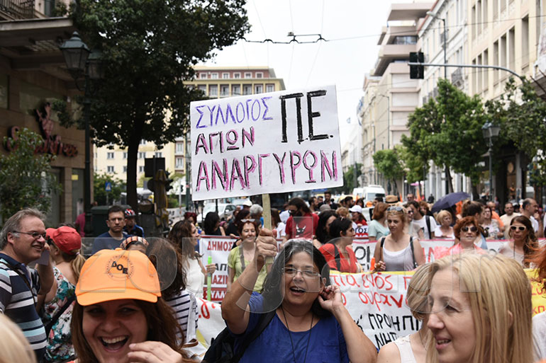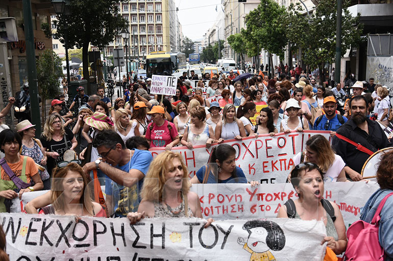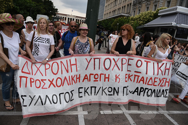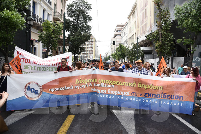 Πορεία διαμαρτυρίας πραγματοποίησαν δάσκαλοι και νηπιαγωγοί. Η πορεία, στην οποία συμμετείχαν περίπου 200 άτομα, ξεκίνησε από την πλατεία Κλαυθμώνος με κατεύθυνση προς τη Βουλή.