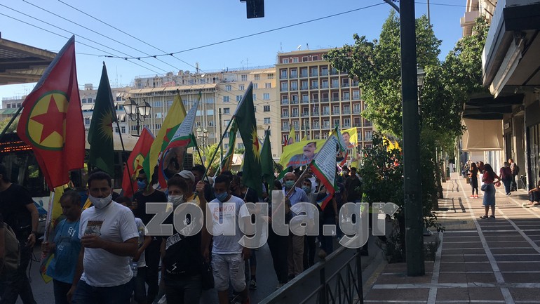 Κούρδοι πρόσφυγες πραγματοποίησαν πορεία στο κέντρο της Αθήνας.