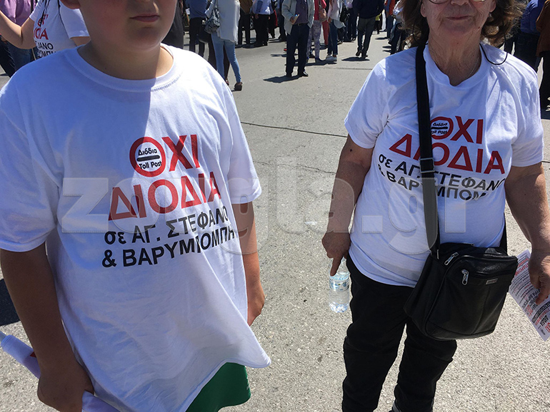 Συγκέντρωση κατά της εγκατάστασης διοδίων στην Εθνική Οδό, στο ύψος του Αγίου Στεφάνου και της Βαρυμπόμπης, πραγματοποιήθηκε από κατοίκους στη Γέφυρα Βαρυμπόμπης νωρίς το μεσημέρι της Κυριακής.