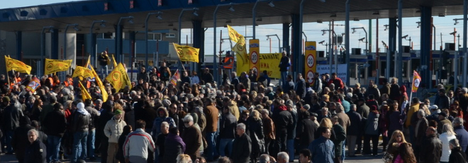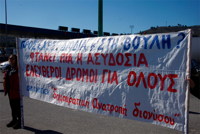 Η συγκέντρωση πραγματοποιήθηκε στον παράδρομο της εθνικής οδού Αθηνών-Λαμίας, στο ύψος των διοδίων Αφιδνών, από κατοίκους των γύρω περιοχών και οργανώσεις που διαμαρτύρονται για τις αυξήσεις στα τέλη των διοδίων.