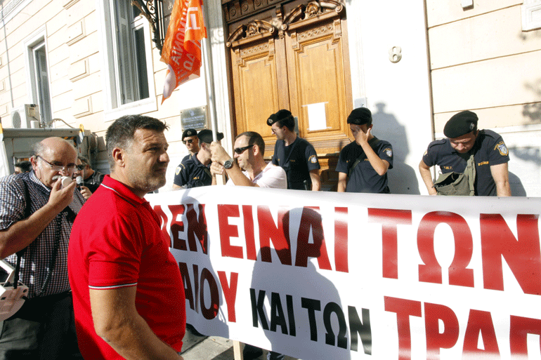 Όπως υποστηρίζουν οι διαδηλωτές, «η συζήτηση αυτή είναι υποκριτική και προκαλεί τον κόσμο, όταν με αποφάσεις της Ευρωπαϊκής Ένωσης σφαγιάζονται οι συντάξεις και τα εισοδήματα του λαού, και ταυτόχρονα καταργούνται συλλογικές συμβάσεις εργασίας».