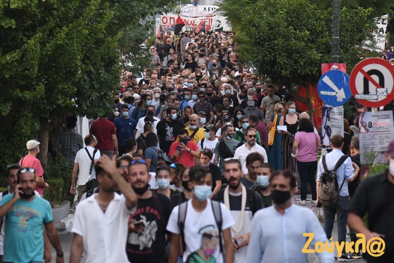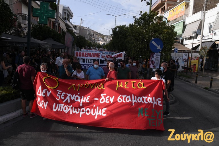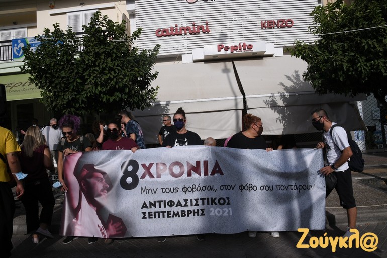 Ολοκληρώθηκε η μεγάλη αντιφασιστική πορεία στο Κερατσίνι για τα οκτώ χρόνια από τη δολοφονία του Παύλου Φύσσα.