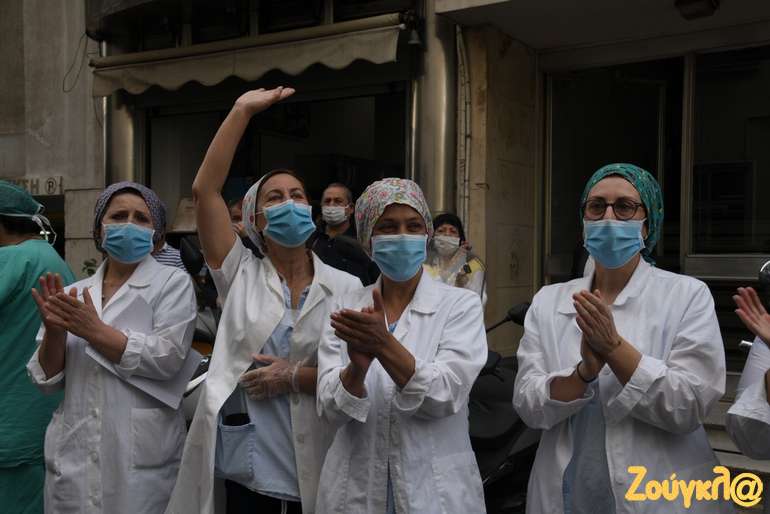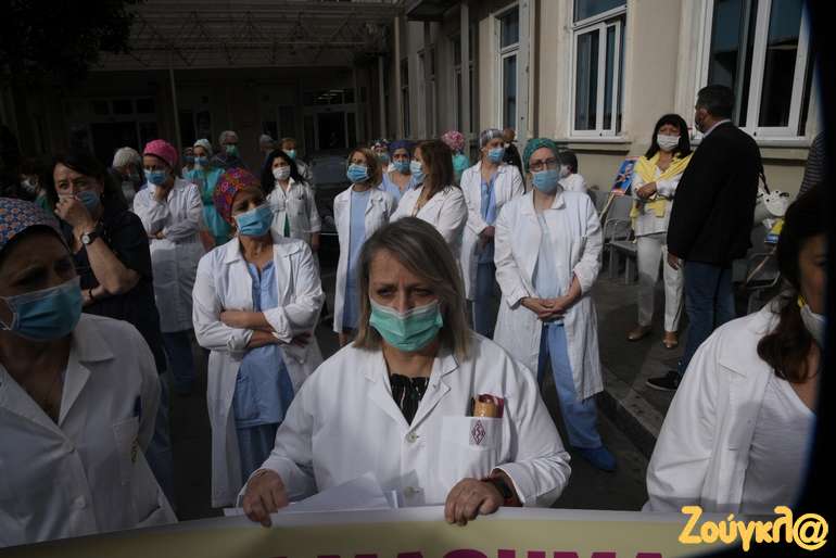 Τα αιτήματά τους διατύπωσαν το πρωί νοσηλεύτριες και νοσηλευτές του Νοσοκομείου «Αλεξάνδρα» με αφορμή τη σημερινή ημέρα, 12 Μαΐου, που είναι αφιερωμένη στο νοσηλευτικό προσωπικό.