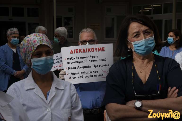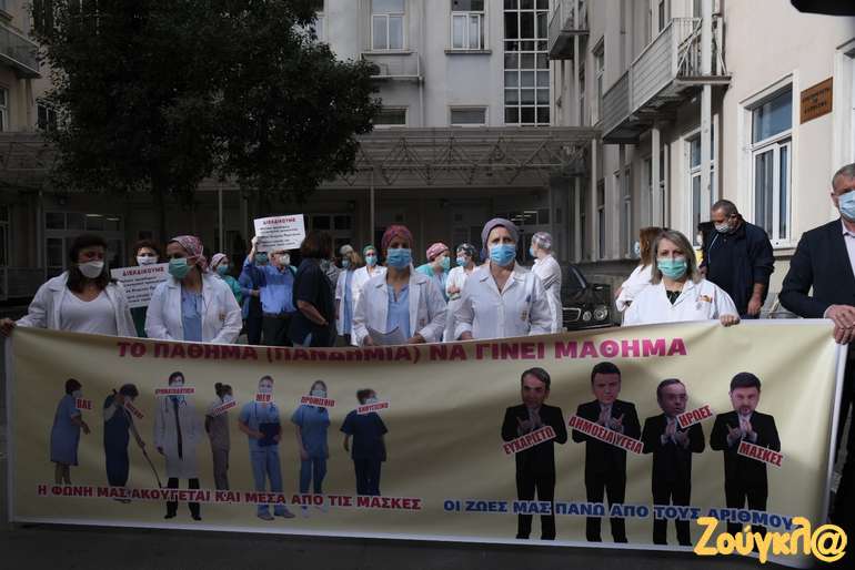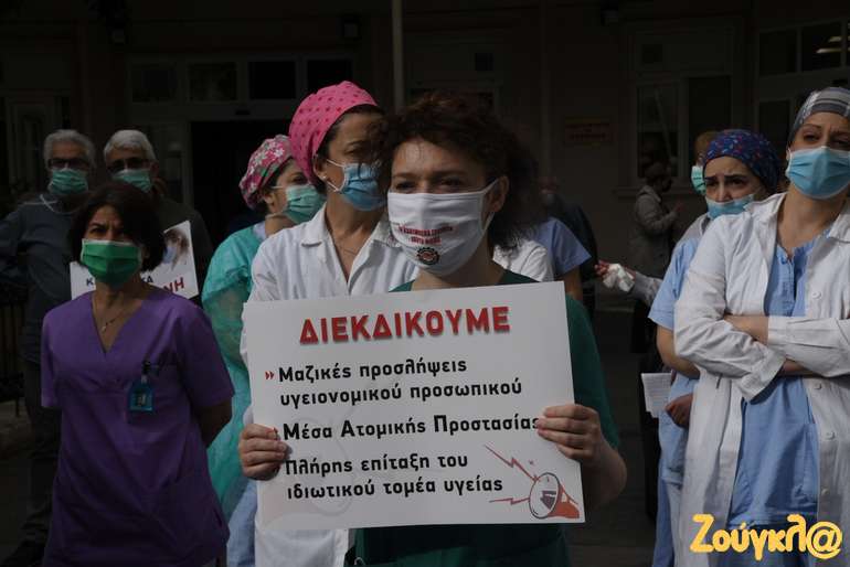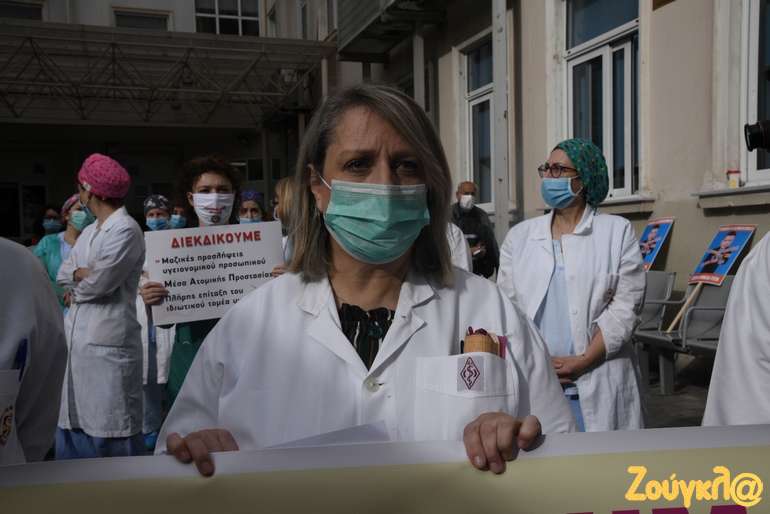 Από τις 08:30 το πρωί, στο προαύλιο του νοσοκομείου, πραγματοποιήθηκε συγκέντρωση της ΠΟΕΔΗΝ με τη συμμετοχή του Συλλόγου Εργαζομένων Νοσοκομείου Αλεξάνδρα (ΣΕΝΑ).