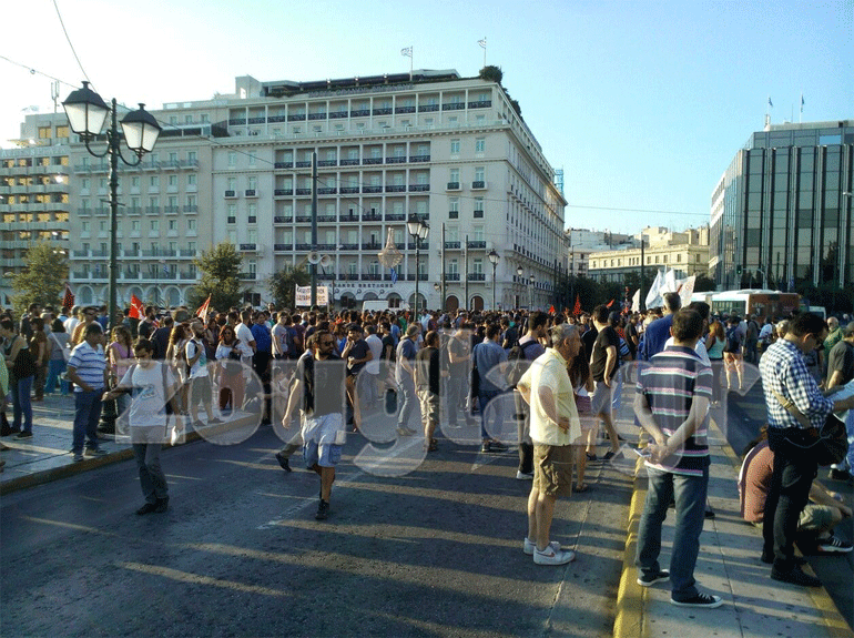 Σε εξέλιξη είναι αυτή την ώρα συλλαλητήριο διαμαρτυρίας στο Σύνταγμα, ενάντια της συμφωνίας που σύναψε η ελληνική κυβέρνηση στη Σύνοδο Κορυφής.