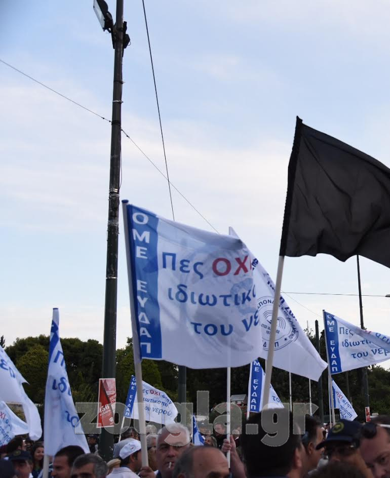 Ο πρόεδρος της ΓΕΝΟΠ-ΔΕΗ Γιώργος Αδαμίδης, δήλωσε πως “αυτό που γίνεται σήμερα στη Βουλή, είναι εκποίηση δημοσίων αγαθών όπως είναι το ρεύμα και το νερό”. Ο Βαγγέλης Μουτάφης, εκπρόσωπος εργαζομένων της ΕΥΔΑΠ, δήλωσε από τη μεριά του, ότι “η κυβέρνηση εξαπάτησε το λαό θυσιάζοντας το νερό στο βωμό των μνημονίων που η ίδια υπέγραψε”.