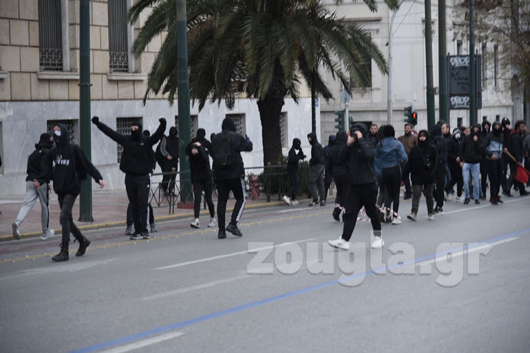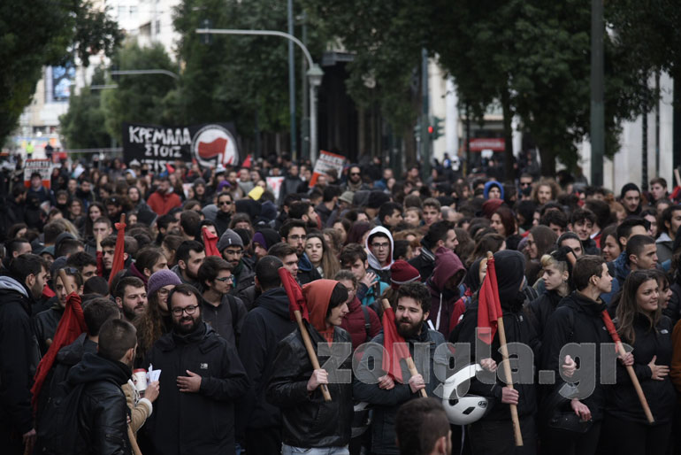 Επεισόδια ξέσπασαν το μεσημέρι της Πέμπτης κατά τη διάρκεια του μαθητικού συλλαλητηρίου στα Προπύλαια όταν ομάδα αγνώστων με καλυμμένα τα χαρακτηριστικά τους πέταξε πέτρες σε κατάστημα τράπεζας με τους αστυνομικούς να απαντούν με οβίδες κρότου λάμψης.