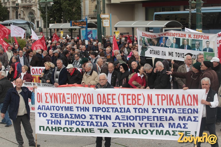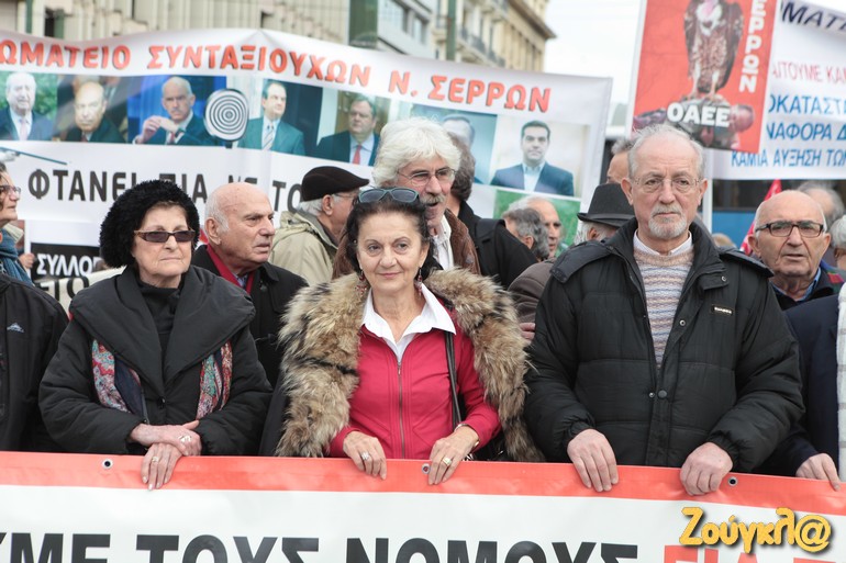 Ολοκληρώθηκε το πανελλαδικό συλλαλητήριο συνταξιούχων που πραγματοποιήθηκε στο κέντρο της Αθήνας. Οι διαδηλωτές συγκεντρώθηκαν αρχικά στην πλατεία Κλαυθμώνος και με πορεία κατευθύνθηκαν στο Μέγαρο Μαξίμου. Εκεί, αντιπροσωπεία συναντήθηκε με τον διευθυντή του οικονομικού γραφείου του πρωθυπουργού, Γιώργο Τσίπρα.