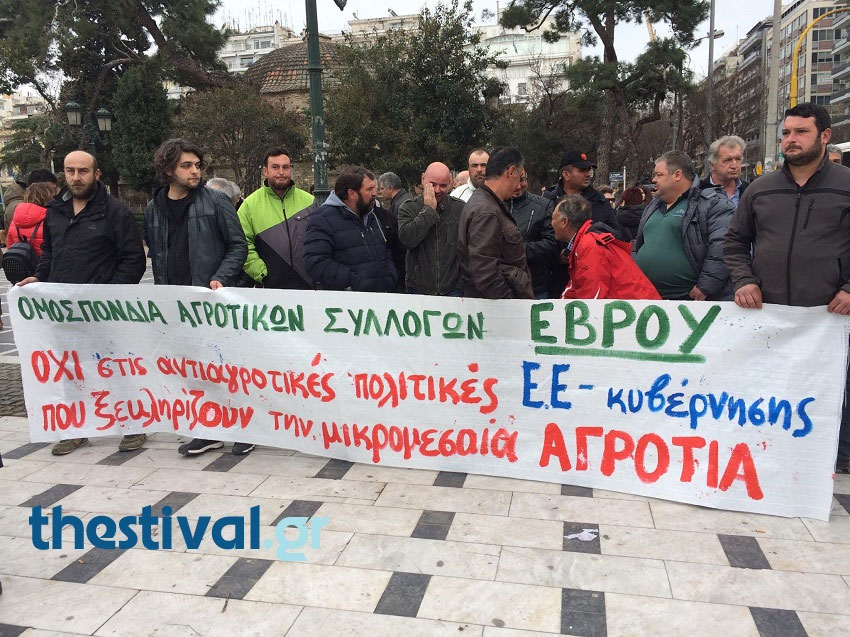 Με σύνθημα «Μπλόκο σε αυτούς που ληστεύουν το μόχθο μας», αγρότες μέλη της Πανελλαδικής Επιτροπής των Μπλόκων, πραγματοποιούν συλλαλητήριο στη Θεσσαλονίκη, με αφορμή την 27η Agrotica.