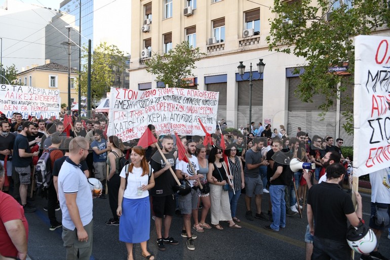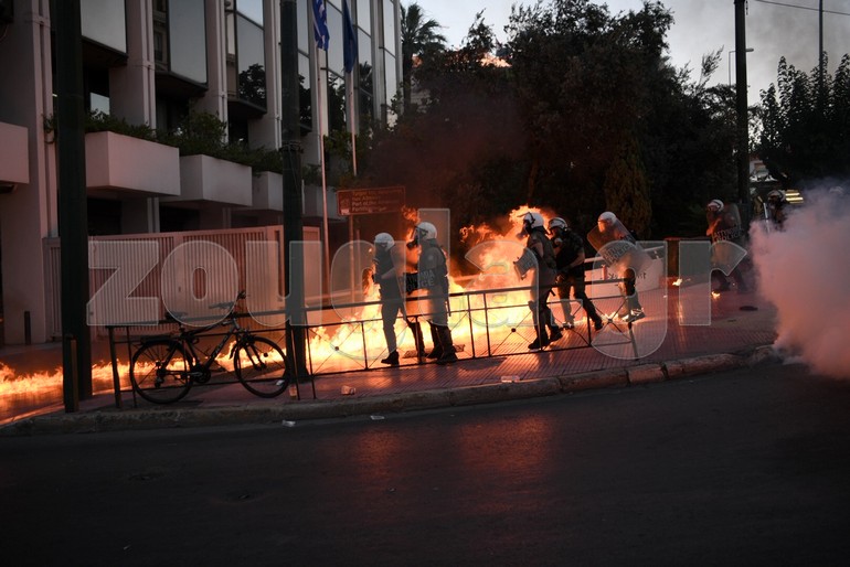 Στο συλλαλητήριο του ΕΚΑ, της ΑΔΕΔΥ, εργατικών σωματείων, φορέων και οργανώσεων της Αριστεράς που πραγματοποιήθηκε λίγο μετά τις 19:00 στο κέντρο της Αθήνας ενάντια στο νομοσχέδιο για τις διαδηλώσεις, ξέσπασαν περί τις 20:30 επεισόδια έξω από τη Βουλή.