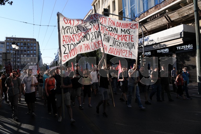 Με κεντρικά συνθήματα «το νομοσχέδιο θα μείνει στα χαρτιά. Όχι στην απαγόρευση των διαδηλώσεων» και «Κανένας Μόνος του, Καμία ανοχή στα σχέδια τους», οι διαδηλωτές συγκεντρώθηκαν αρχικά στην πλατεία Κλαυθμώνος και κατευθύνονται προς τη Βουλή.