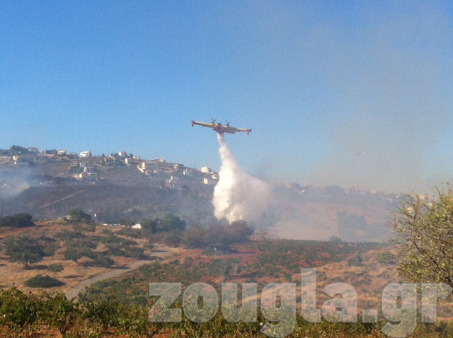Ωστόσο οι ισχυροί άνεμοι που πνέουν στην περιοχή και οι συνεχείς εναλλαγές στην κατεύθυνση τους, δυσκόλεψαν το έργο των πυροσβεστών.
