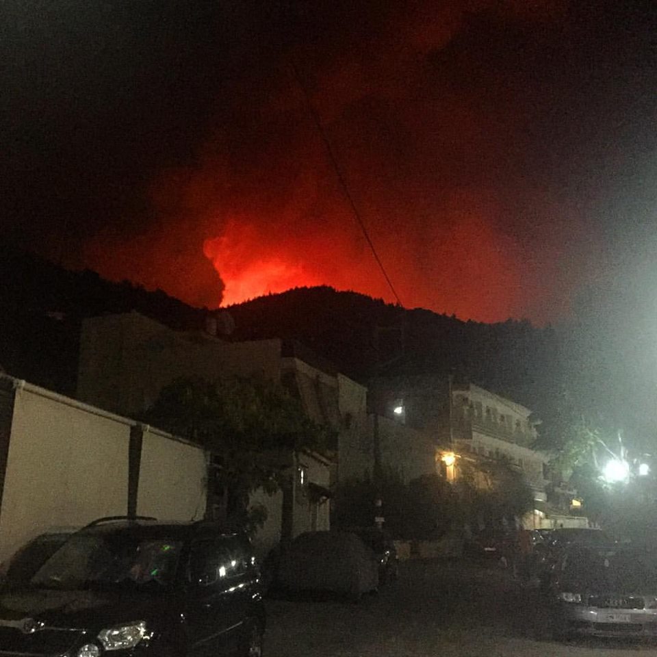 Σημείωσε ακόμη ότι δεν φαίνεται να υπάρχει κίνδυνος για κατοικημένες περιοχές και πως για προληπτικούς λόγους εκκενώθηκε παραθαλάσσιο ξενοδοχείο, το οποίο είχαν πλησιάσει οι φλόγες.