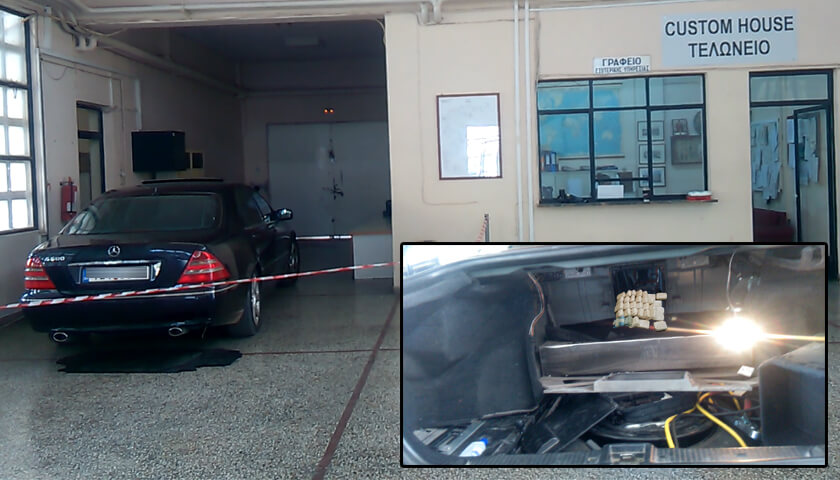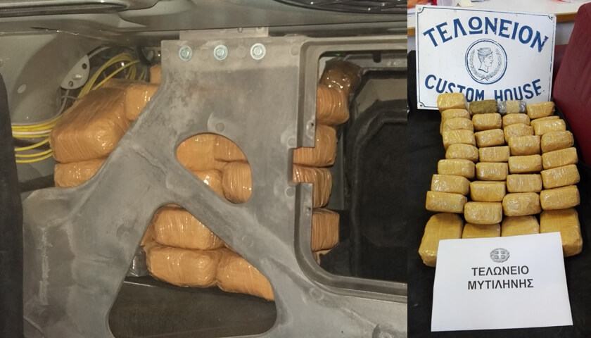 Συγκεκριμένα, όπως αναφέρεται σε ανακοίνωση της Γενικής Γραμματείας Δημοσίων Εσόδων, με τη βοήθεια σκύλου ανιχνευτή ναρκωτικών ουσιών, βρέθηκαν στο πορτ μπαγκάζ του αυτοκινήτου, επιμελώς κρυμμένα, τριάντα τρία  δέματα με πλαστικό περιτύλιγμα.