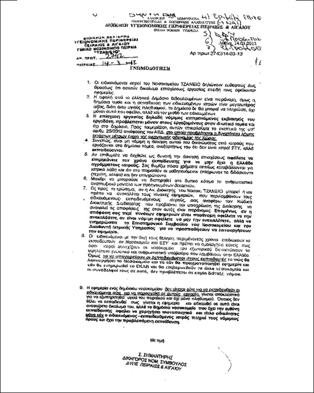 Σήμερα περιήλθε σε γνώση μας κατάπτυστο κείμενο του νομικού συμβούλου της 2ης ΥΠΕ (κλικ εδώ) το οποίο εκείνος χαρακτηρίζει ως “Γνωμοδότηση”, μέσω του οποίου επιχειρεί να προσδώσει νομιμοφάνεια σε κατασταλτικές ενέργειες της Διοίκησης έναντι των ειδικευόμενων που κινητοποιούνται.