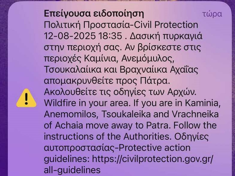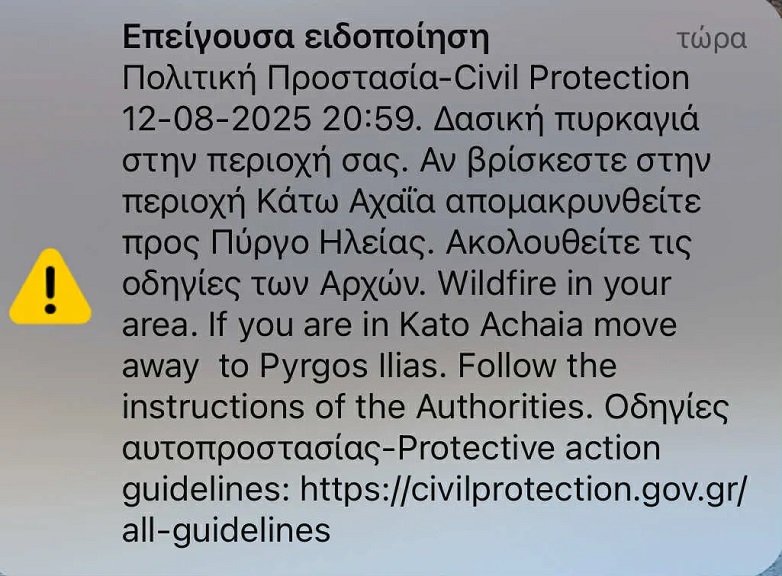 Εκκενώνεται η Κάτω Αχαΐα - Μήνυμα από το 112
