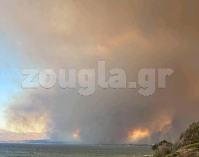 Συγκλονιστικές λήψεις για το πώς φαίνεται το μέτωπο της φωτιάς από την πλευρά της θάλασσας