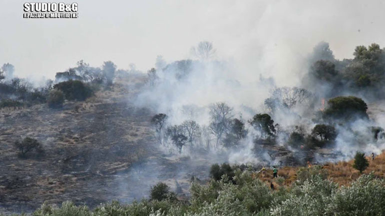 Καλύτερη είναι η εικόνα από την πυρκαγιά στο Κουτσοπόδι του Δήμου Άργους Μυκηνών στην Αργολίδα, που ξέσπασε στις 16:50, από άγνωστη μέχρι στιγμής αιτία, το απόγευμα της Παρασκευής.