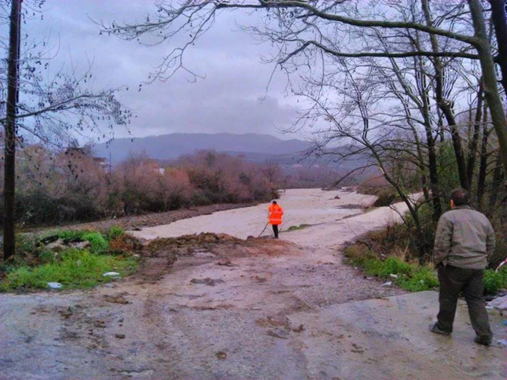 Συνεργεία των Δήμων Πάργας και Παραμυθιάς επιχειρούν στην κοίτη, δημιουργώντας με ογκόλιθους αναχώματα.
