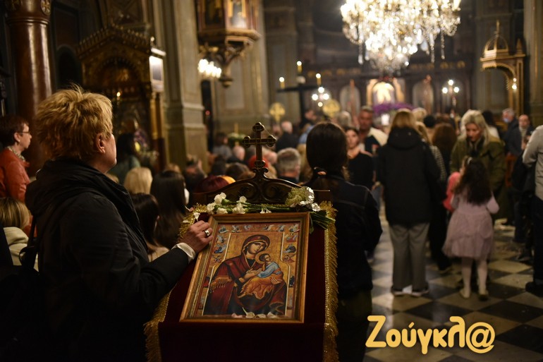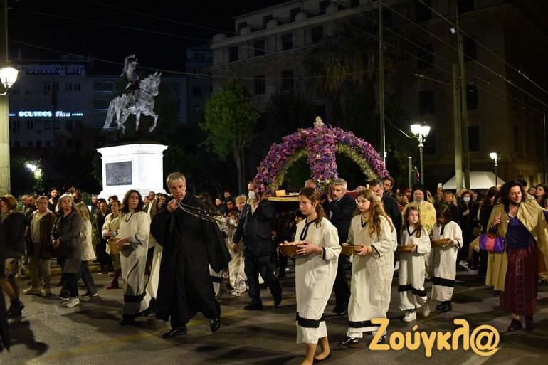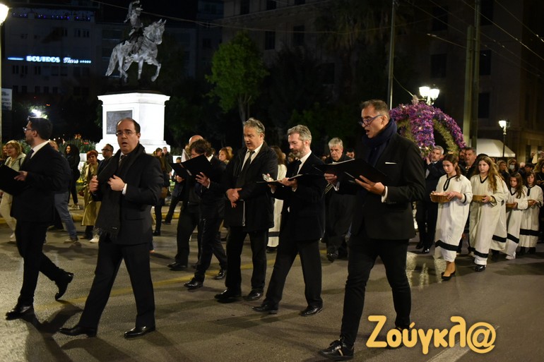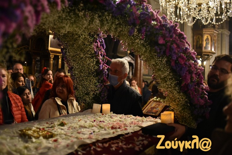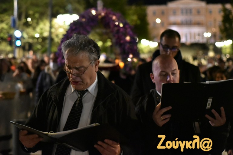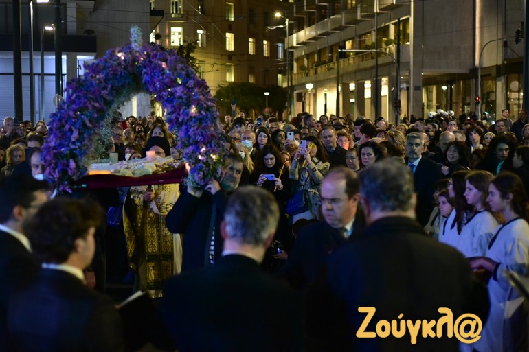Όπως έγινε σε όλους τους ναούς ανά την επικράτεια, έτσι και στον Καθεδρικό Ιερό Ναό Αθηνών τελέστηκε η Ακολουθία του Επιταφίου Θρήνου και ακολούθησε η Περιφορά του Επιταφίου, στο κέντρο της Αθήνας.