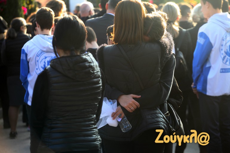 Στους ώμους τους μετέφεραν το φέρετρο μέσα από τον Ιερό Ναό Αγίας Τριάδας στον Ασπρόπυργο οι συναθλητές του, με την οδύνη χαραγμένη στα πρόσωπά τους, αλλά και στα πρόσωπα όλων όσοι ήταν εκεί για να τον συνοδεύσουν στην τελευταία κατοικία του στο Δημοτικό Κοιμητήριο Σχιστού.
