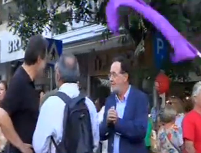 Παράλληλα, ομάδα κατόχων κρατικών ομολόγων συγκεντρώθηκε στην πλατεία της ΧΑΝΘ, απέναντι από την κεντρική είσοδο της έκθεσης, άνοιξε πανό και φώναξε συνθήματα, ζητώντας από την κυβέρνηση να αποζημιώσει τους ομολογιούχους που υπέστησαν απώλειες από το «κούρεμα» των ομολόγων.