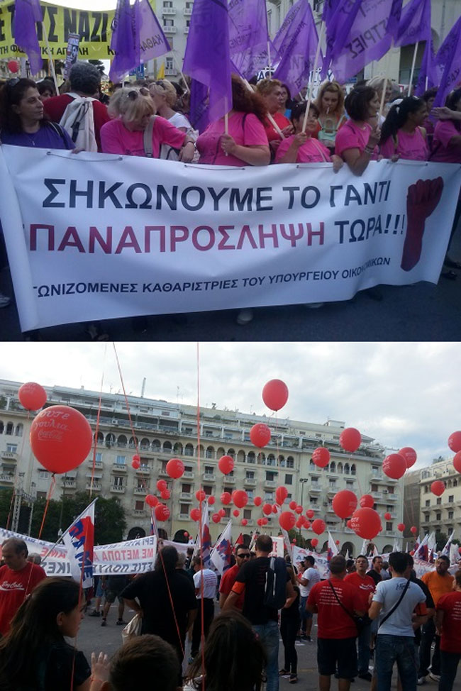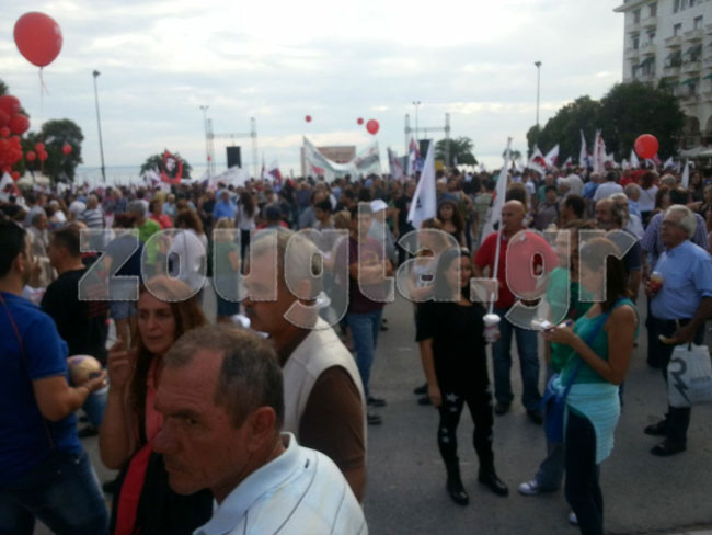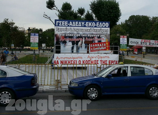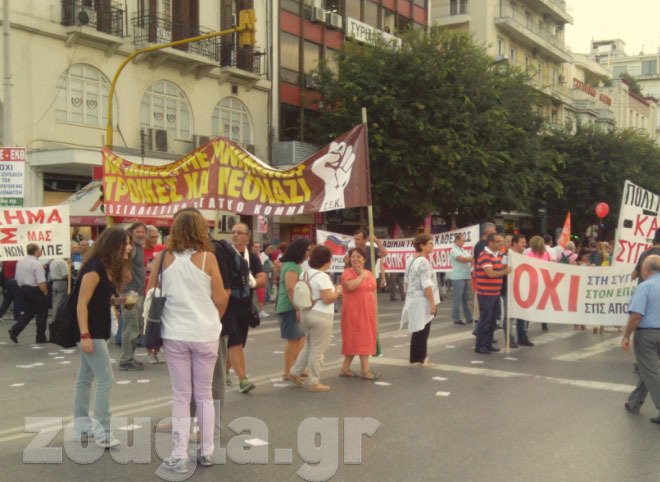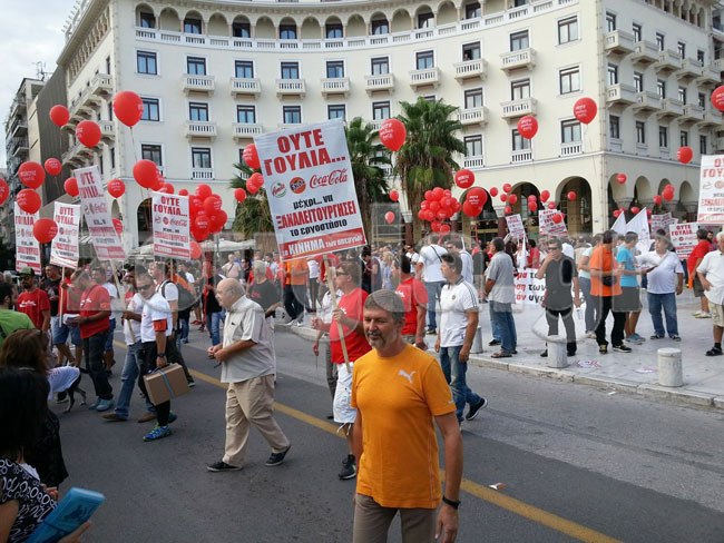 Παράλληλα, στο Άγαλμα του Βενιζέλου στην πλ. Αριστοτέλους συγκεντρώθηκαν περίπου 6.000 μέλη της ΓΣΕΕ, της ΑΔΕΔΥ, του Εργατικού Κέντρου Θεσσαλονίκης, της Ένωσης Δημοσιοϋπαλληλικών Οργανώσεων Θεσσαλονίκης και άλλων σωματείων και συνδικάτων. Από εκεί ξεκίνησε η πορεία τους από κεντρικούς δρόμους της συμπρωτεύουσας.
