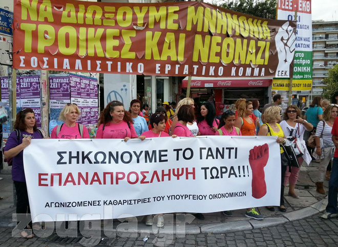 Σωματεία και οργανώσεις της εξωκοινοβουλευτικής Αριστεράς, η Λαϊκή Αντίσταση – Αριστερή Αντιιμπεριαλιστική Συνεργασία (ΛΑ -ΑΑΣ), το Μ-Λ ΚΚΕ, το ΚΚΕ (μ-λ), η ΑΝΤΑΡΣΥΑ κ.ά. συγκεντρώθηκαν στην Καμάρα και οι επιτροπές αγώνα κατά της εξόρυξης χρυσού στις Σκουριές Χαλκιδικής στην πλατεία Αγίας Σοφίας.